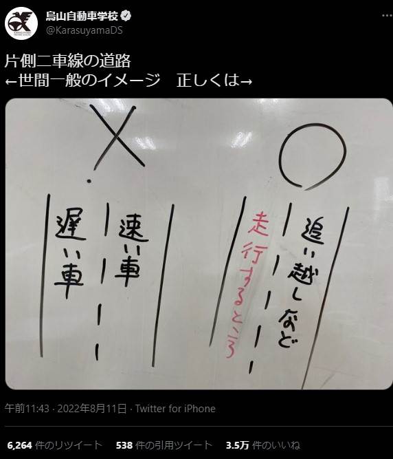 ←世間一般のイメージ 正しくは→ 鳥山自動車学校の公式Twitterのこんなツイートに注目が集まっています。