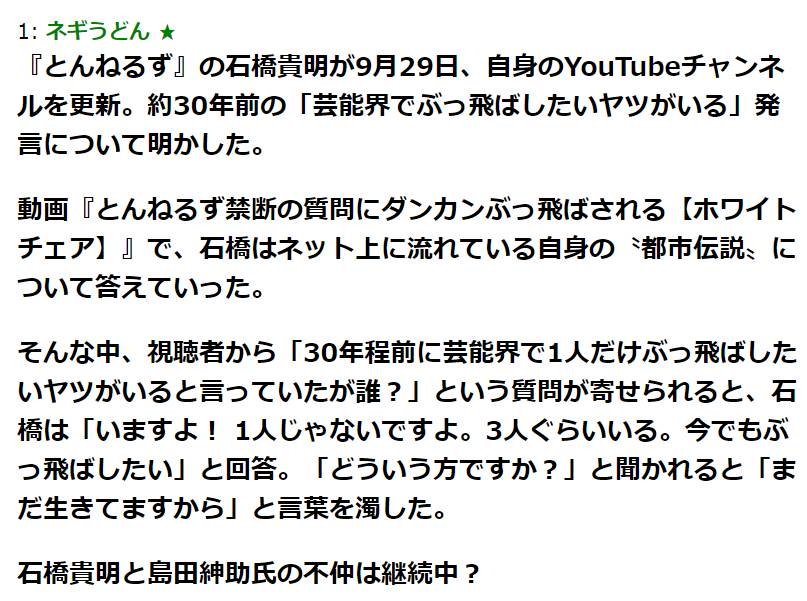 石橋貴明の“ブッ飛ばしたい相手”判明? 第一候補に挙がった元大御所芸人
