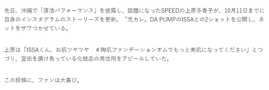 上原多香子やっぱり離婚確定?元カレISSAとの“現在の関係性”にネット民ドン引き