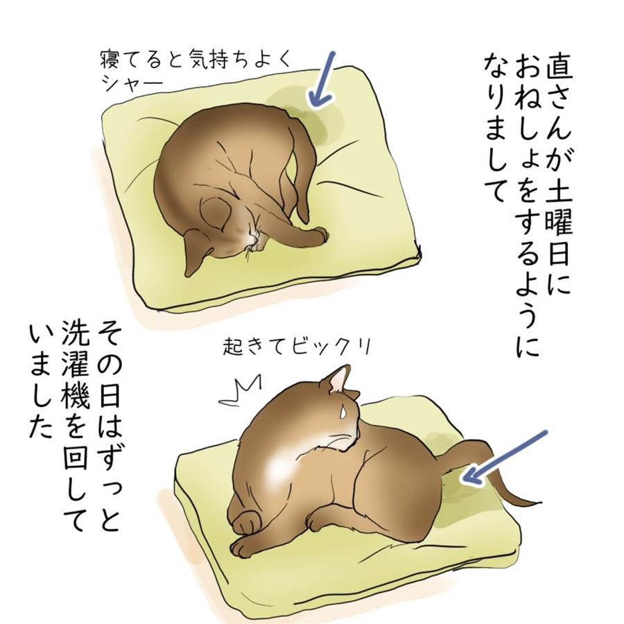 寝返りを追いかけるネコとの日常…かわいいけどw