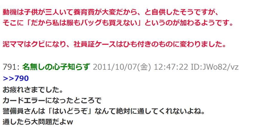 【衝撃】私の社員証を盗んだ泥ママ『カード壊れてるのか、エラーが出て入れなくて~(私の権限では入れない)』警備員「^^」→「しょうがないですね~」な展開を狙ってたらしいが…w