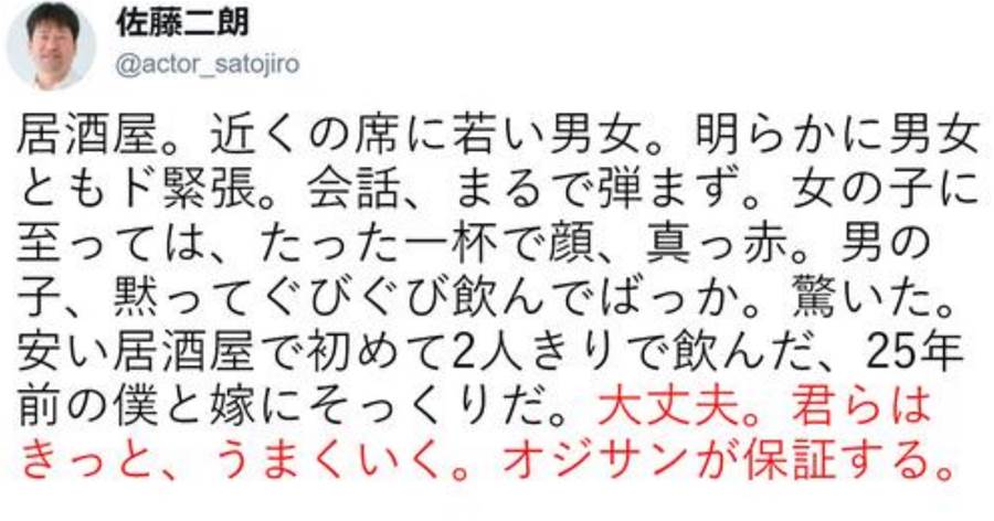 佐藤二朗、居酒屋で見かけた初々しいカップルを応援「君らはきっと、うまくいく。」