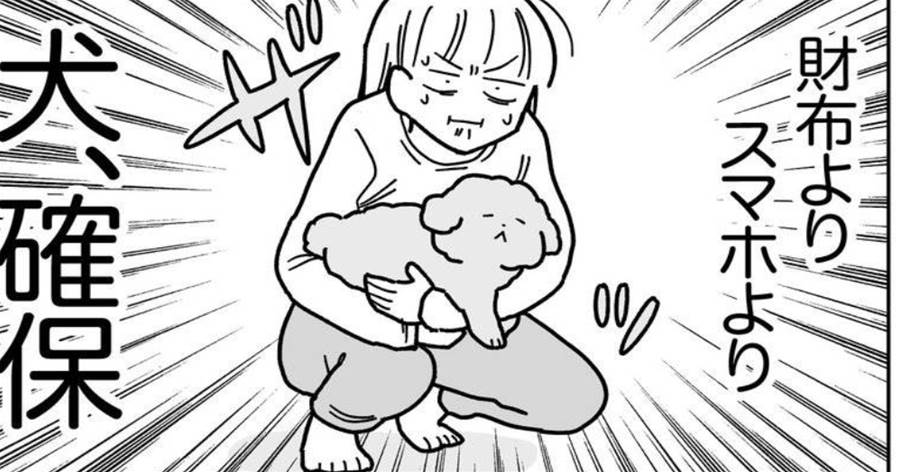 地震と私とイッヌ。彼は雷と台風にもまったく動じないです。