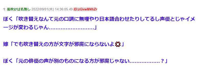 ぼく「映画見ようよ。字幕で良い?」嫁「吹き替えがいい!」ぼく「え………?」→結果・・・