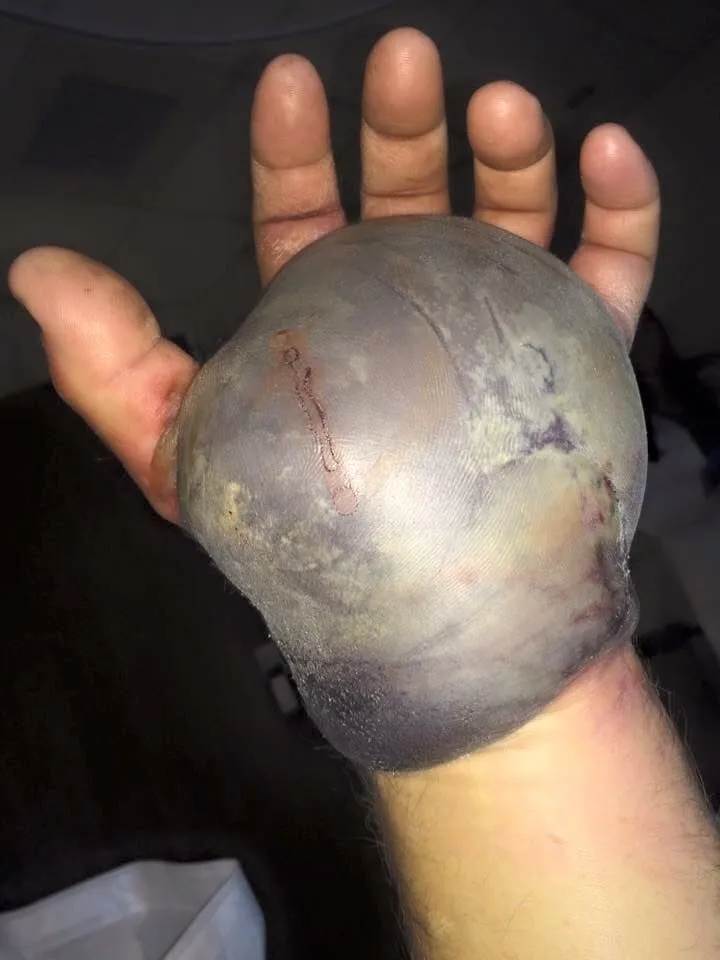 ガラガラヘビに噛まれた手が恐ろしい状態に・・・これは酷すぎる・・・