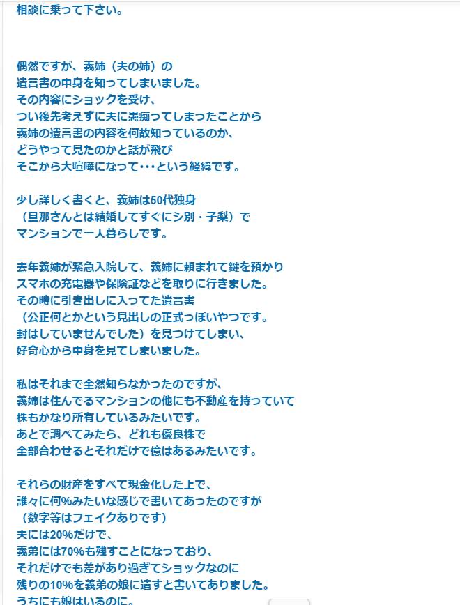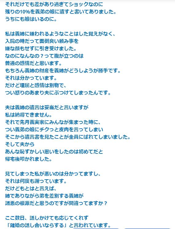 義姉(50代独身)の遺言書を盗み見たら、億の財産があった。私「あなたに20%って少なすぎる!」旦那「何で遺言の内容知ってんの!?」私「」→とんでもない事に…