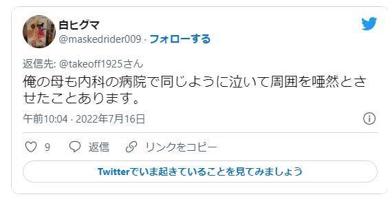 ドン引きした。歯の治療が終わり待合室に戻ると、母親が号泣していて・・・えぇぇ(笑)