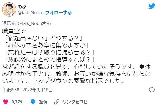 とても神だった。夏休み終了前の職員会議でとある先生が呼びかけた『お願い』にハッとした