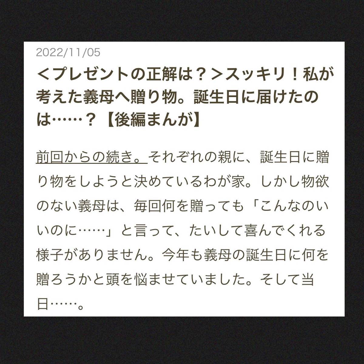 <プレゼントの正解は?>スッキリ!私が考えた義母へ贈り物。誕生日に届けたのは……?