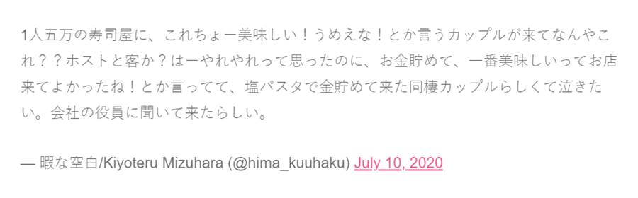 高級寿司屋で「これちょー美味しい!」と話しているカップルがいた。「はー。やれやれ…」と思っていたら…真相に「泣ける」