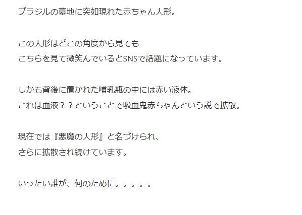 ブラジルの墓地に現れた謎の悪魔の人形…哺乳瓶の中には赤い液体が…