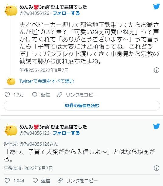 ベビーカーを押して地下鉄に乗っていたら「かわいいね」とお爺さんが近づいてきて、お礼を言ったら・・・えっ。。