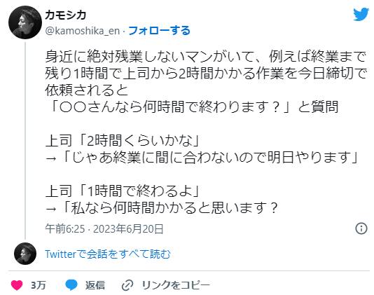 「絶対残業しないマンの強すぎる残業の断り方がこちらです」→めっちゃ物議に