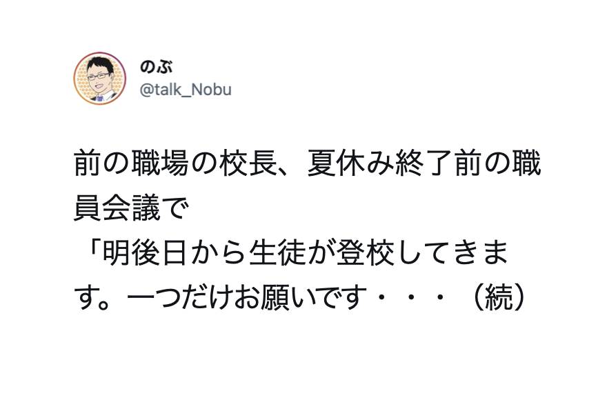 とても神だった。夏休み終了前の職員会議でとある先生が呼びかけた『お願い』にハッとした
