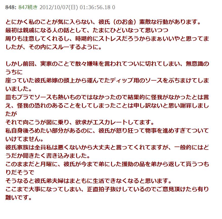 散々嫌味を言われてついに切れてしまい、無意識のうちに座っていた彼氏弟嫁の頭上から運んでたソースをぶちまけてしまった。