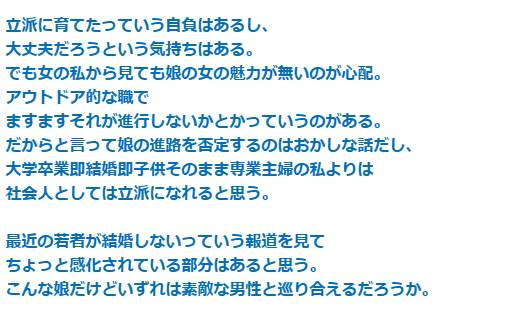 アウトドア好き旦那(自衛隊員)の影響で、娘が女の魅力ゼロに育った。娘「女らしくしないと結婚できないよ!」娘「はあ?」→結果…
