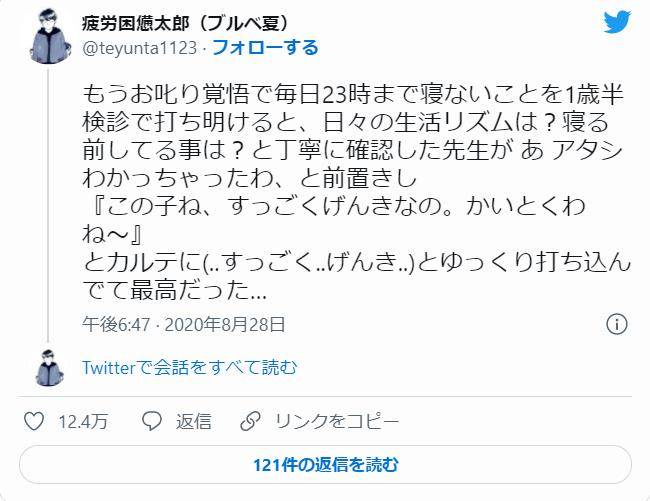 毎日23時まで寝ない1歳半の息子。検診のときに叱責覚悟で相談すると…先生「 あ、アタシわかっちゃったわ…」