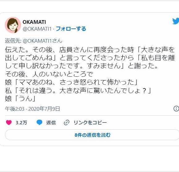 店員さんに娘が注意された際の母親の対応に賞賛の声が上がる!これぞ教育!!