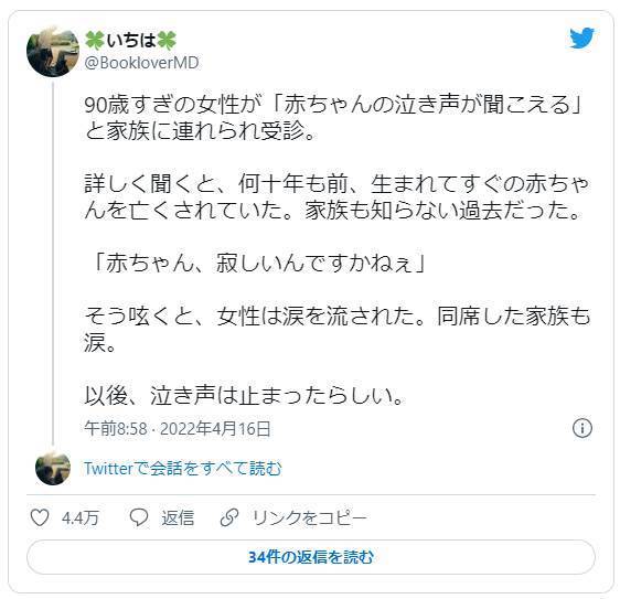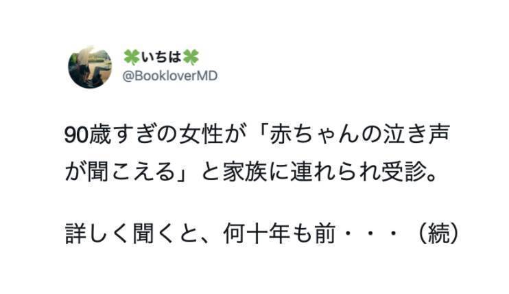 「赤ちゃんの泣き声が聞こえる」と家族に連れられ精神科を受診した90歳過ぎの女性。詳しく話を聞いて判明した真相は・・・