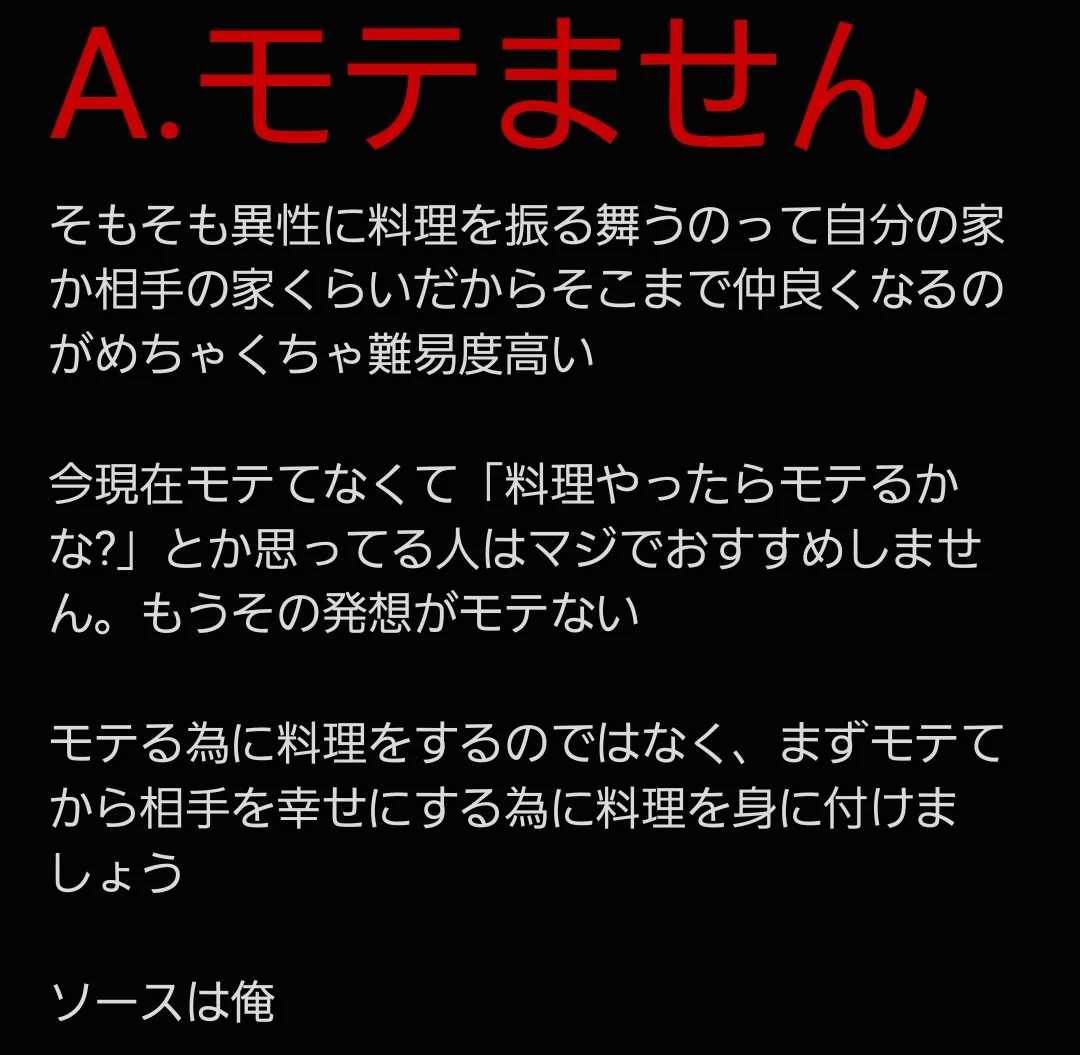 「料理できたらモテますか?」。この質問に「モテません」と一刀両断する料理のおにいさん。