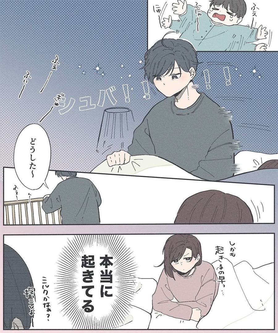 どんな時でもまめちゃんが泣いた時は一番に起きた旦那さん