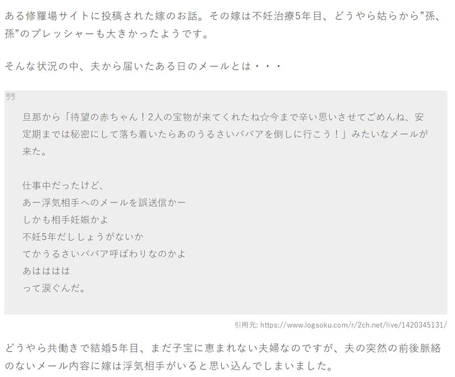 【驚愕】不妊治療5年目の妻が受け取った夫からの誤爆メール『待望の赤ちゃんが出来たね』の真相とは