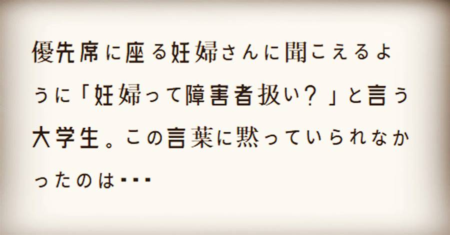 優先席に座る妊婦さんに聞こえるように「妊婦って障害者扱い?」と言う大学生。この言葉に黙っていられなかったのは・・・