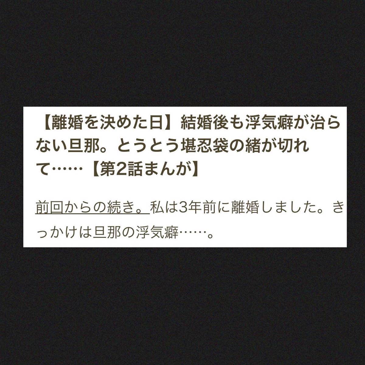 【離婚を決めた日】結婚後も浮気癖が治らない旦那。とうとう堪忍袋の緒が切れて……