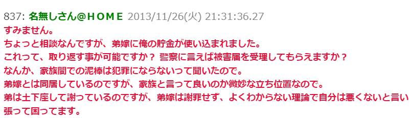 弟嫁が9桁の俺の貯金を使い込んだ。弟「ゴメン(土下座)」弟嫁「私は悪くない!独り者がこんな金持ってるのがおかしい!」→弁護士雇って警察に行ったら…