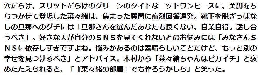 【画像あり】菜々緒「皆さんSNSに依存しすぎ。もっと別の幸せを」
