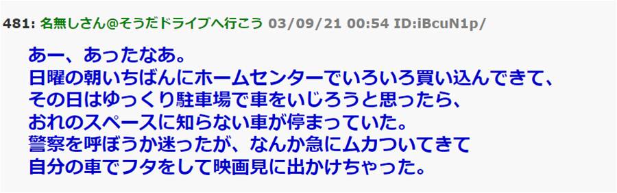 朝イチでホームセンターに言ったら俺のスペースに違法駐車が →自分の車でフタをして映画見に出かけちゃったwww