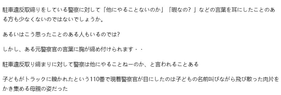 駐車違反の取締りをしていたら『警察は他にやることねーのか』と暴言を吐かれた警察官。→その答えに胸が締め付けられる・・・